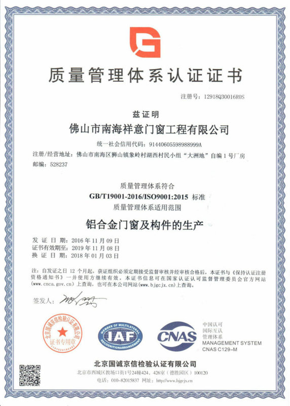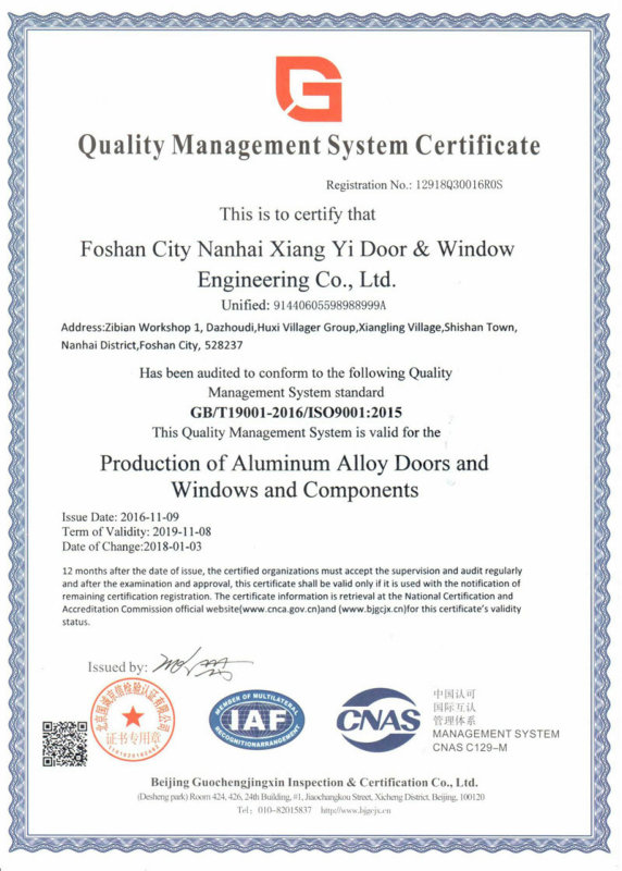 廣東祥意門窗工程有限公司是一家專注鋁合金門窗工程及門窗加工、制作的優質企業。公司憑著精湛的技術服務和優良的售后服務,已成功完成多個優質項目。